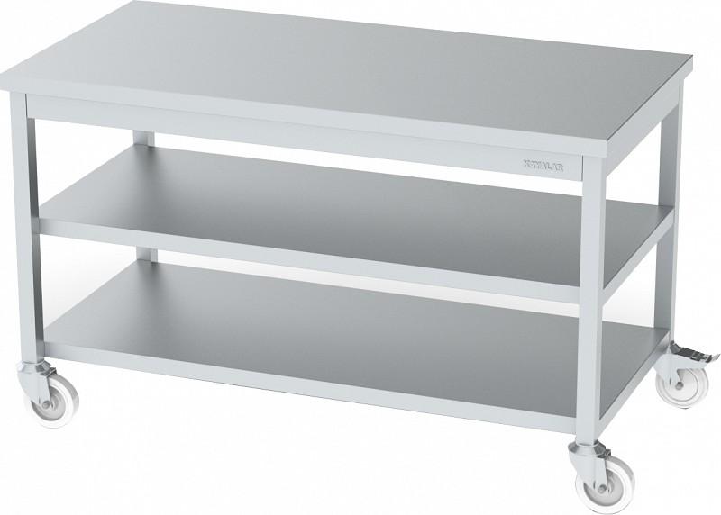 | * Ürün konstrüksiyonu paslanmaz çelikten mamuldür * Üst tabla alınları 40 mm * Tezgah ayakları 40 *40 kutu profil * Paslanmaz çelik taban raflı * İkisi frenli ikisi frensiz 4 adet Ø100 tekerlekli |