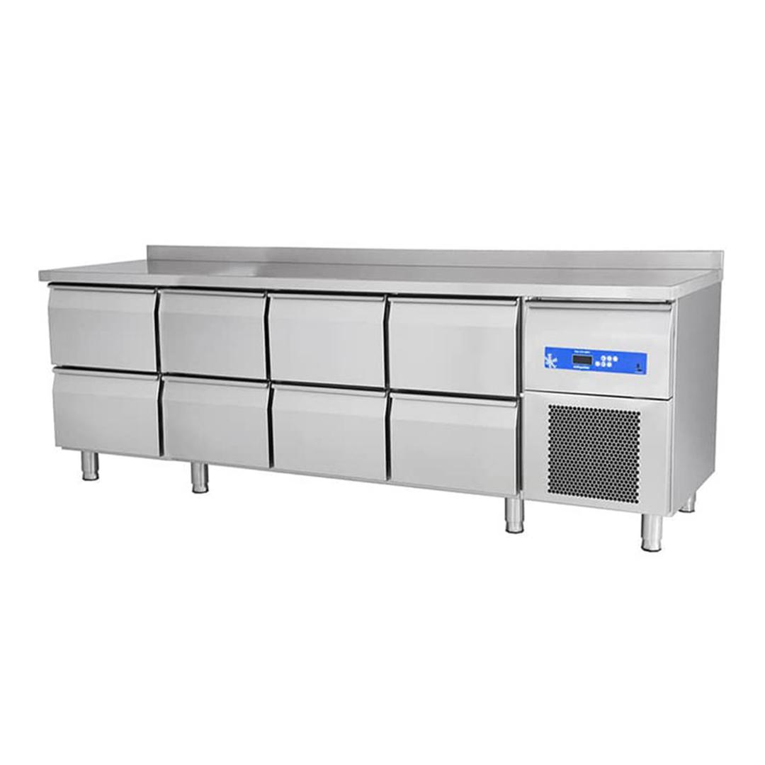 Öztiryakiler 8 Çekmeceli Yatay Tip Buzdolabı, farklı ürünleri aynı anda birbirine karışmadan muhafaza etmenizi sağlar. HACCP Dijital Kontrol Paneli, kolay sökülür takılabilir Mono-Block soğutma sistemi özellikleriyle kullanım kolaylığını arttırır. Ayrıca opsiyonel olarak da gemi tipi ayak veya hareketli tekerlek seçeneği de bulunmaktadır.