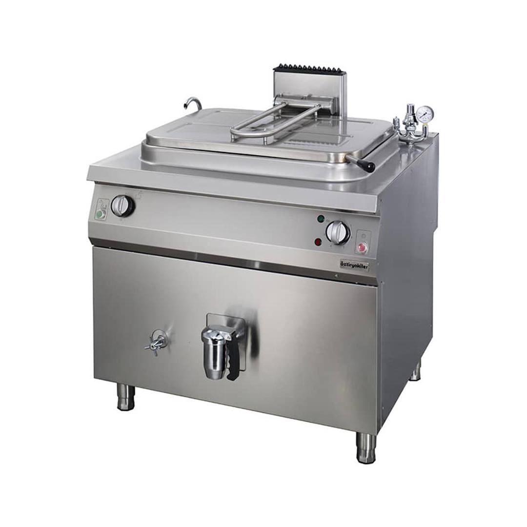 | AÇIKLAMA | * Yuvarlak veya dikdörtgen kazana sahip kaynatma tencereleri birçok farklı yemek, çorba ve sos yapma imkanı sağlamaktadır. * Monoblok kazan yapısı sayesinde ürünlerin dayanıklılığı arttırılmış ve temizlik kolaylığı sağlanmıştır. * Çift cidarlı kapak izolasyon seviyesini arttırmaktadır. Ayarlanabilir yaylı kapak kaldırma mekanizması kapağın kolay açılıp kapanmasını sağlamaktadır. * Kapağın uygun şekilde kapanması ile enerji ve zaman tasarrufu sağlanmaktadır. * İndirekt pişirme sisteminde cidar içinde 110 °C’lik 0,4 bar basınçlı doymuş buhar oluşturulmaktadır ve bu sayede kaynatma tencerelerinin kazan içi, yan ve taban bölümlerinde homojen ısı dağılımı sağlanmaktadır.. * Enerji tüketimini düşürmek için kazan etrafı izolasyon malzemesi ile kaplanmıştır. * Ön panelde bulunan düğme sayesinde cihazın gücü ayarlanabilmektedir. * Gidaya uyumlu büyük tahliye vanası ile hızlı boşaltma imkanı sağlanmıştır. * İndirekt modellerde bulunan basınç emniyet valfi cidar içindeki basıncın aşırı şekilde artmasını engellemektedir. * Manometre göstergesi kullanıcının cidar iç basıncını görmesini sağlar. * Basınç emniyet grubunda bulunan harici basınç valfi ile cihaz çalışırken manuel olarak buhar tahliye imkanı sağlanmıştır. * Ayrıca panelde bulunan sinyal lambaları ile çalışma veya ateşleme gibi durumlar izlenebilmektedir. * Sıcak ve soğuk su bağlantısı yapılabilmektedir. Sıcak ve soğuk su giriş ventilleri ön panelden selenoid valf ile kontrol edilebilmektedir. Cihazların üst tablasında bulunan krom kaplı batarya ile kazan suları doldurulabilmektedir. * Elektrikli modellerde INCOLOY malzemeden yapılmış ısıtıcılar mevcuttur. Cidar su seviyesi düştüğü zaman rezistansı ve kazanı korumak için emniyet termostatı kullanılmıştır. * Elektrikli modellerde elektrik beslemesi: 380-400 V / 3 ~NPE /50 Hz. Gazlı modellerde elektrik beslemesi: 220-240 V / ~NPE /50 Hz.’dir. |